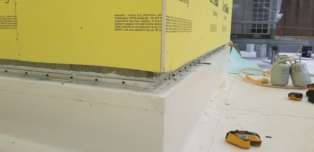 At Apogee, our standard detailing adapts these best practices by wrapping the TPO membrane over parapet blocking and integrating metal fascia trim and manufacturer-approved flashing systems, which ensures both performance and constructability.
