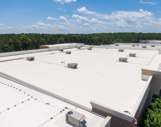 The white reflective membrane, when installed over high-performance rigid polyisocyanurate insulation (minimum R-33), can significantly reduce rooftop surface temperatures and help lower interior cooling demands. This contributes not only to operational cost savings but also to broader sustainability goals, including reduced energy consumption and improved building performance.